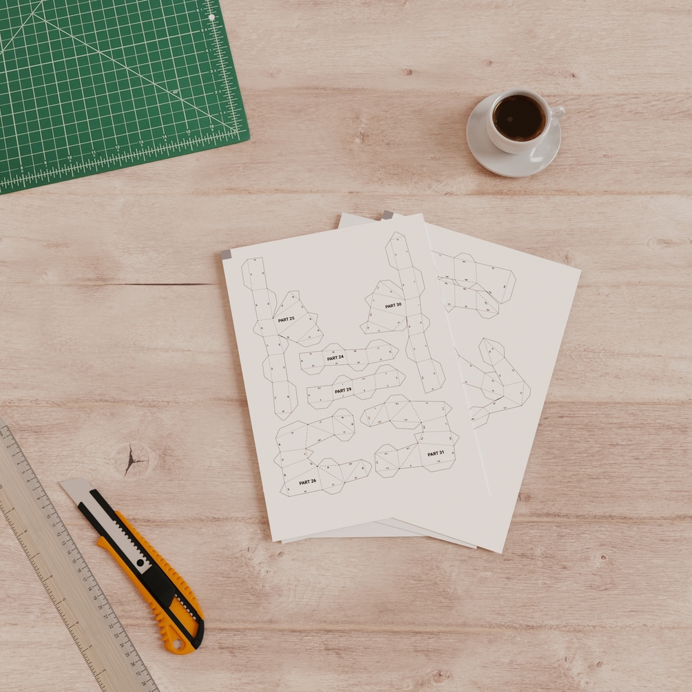 You will need 17 sheets of A4 / Letter paper: 11 Light Gray, 2 White, 1 Pink, 1 Black, 1 Green, 1 Orange. Use thick paper (160+ gsm) for best results.