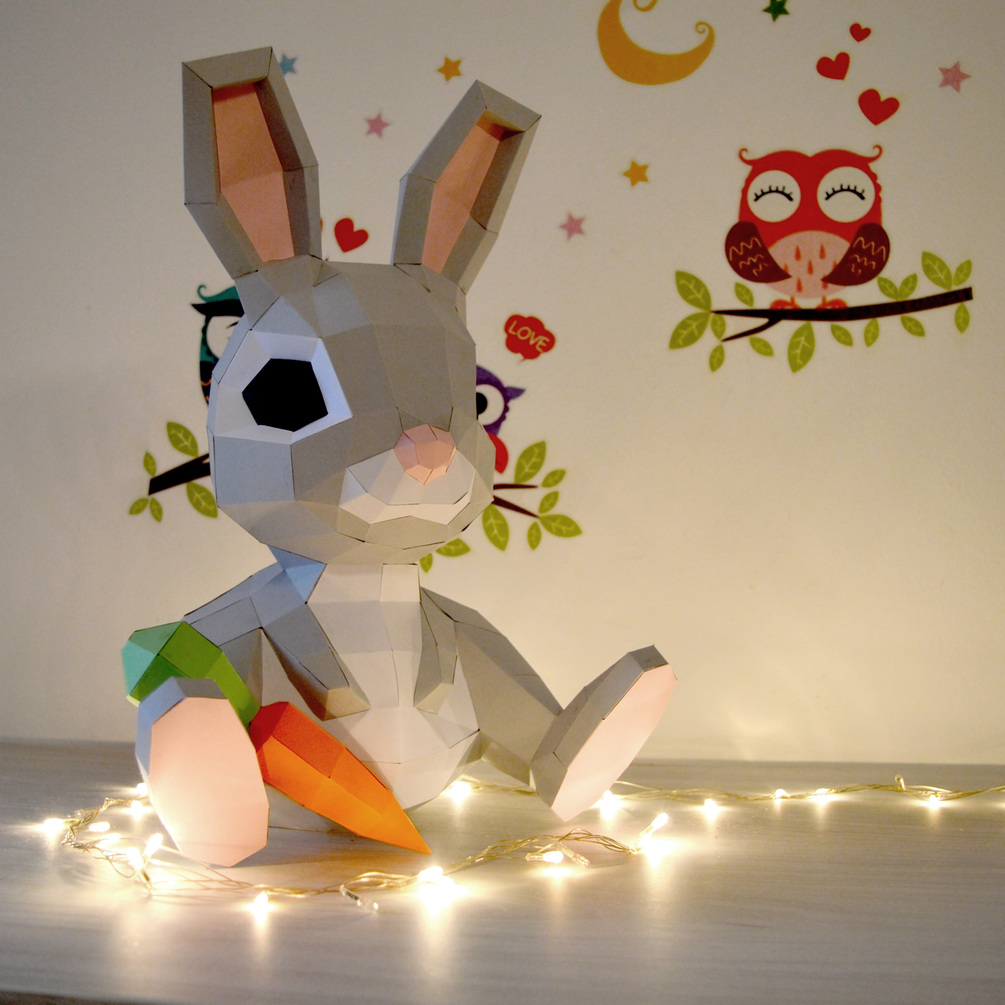 Bunny Papercraft 3D DIY Low Poly Model PDF Template