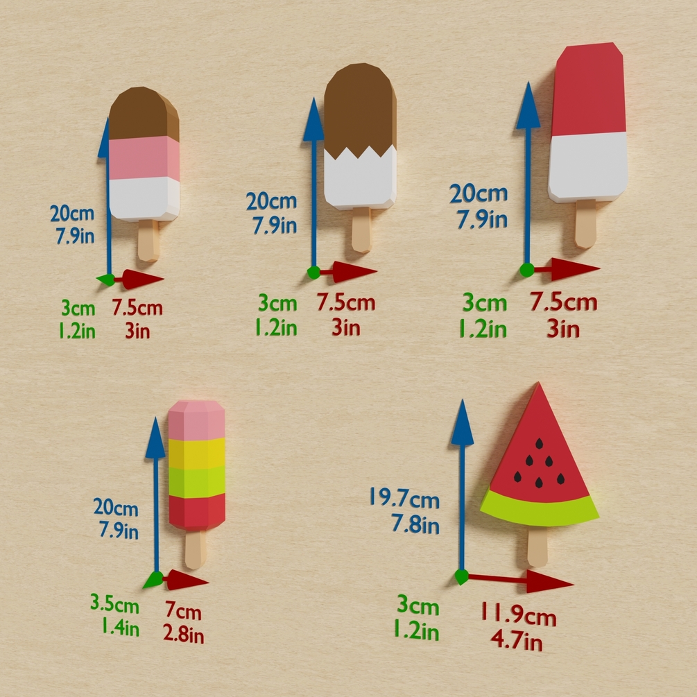 Popsicles Icecreams Papercraft 3D DIY Low Poly Wall Decor PDF Template