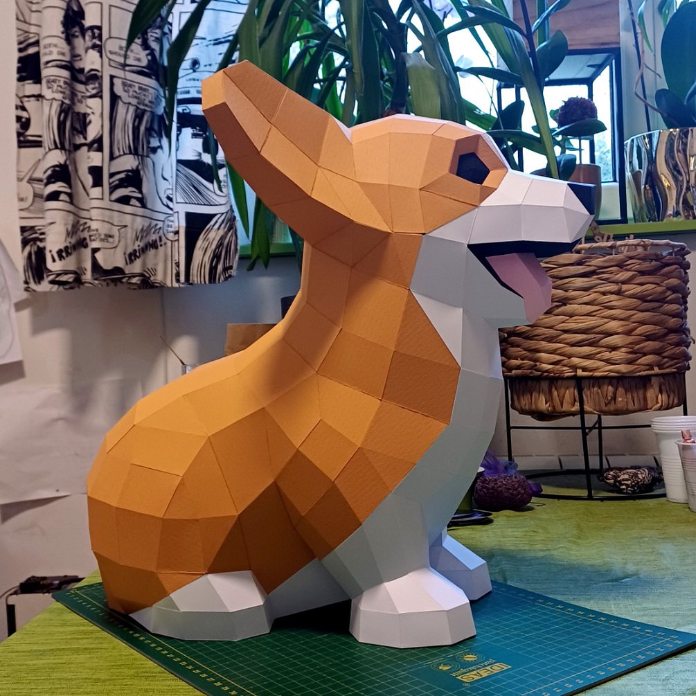 Behold the DIY 3D Papercraft Corgi! Experience the joy of crafting your very own adorable Corgi companion with this easy-to-assemble instructions. Perfect for dog lovers and papercraft enthusiasts alike, this charming project brings the playful spirit of everyone's favorite breed into your home in stunning three-dimensional detail.