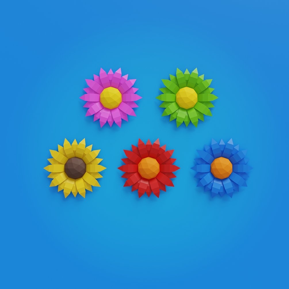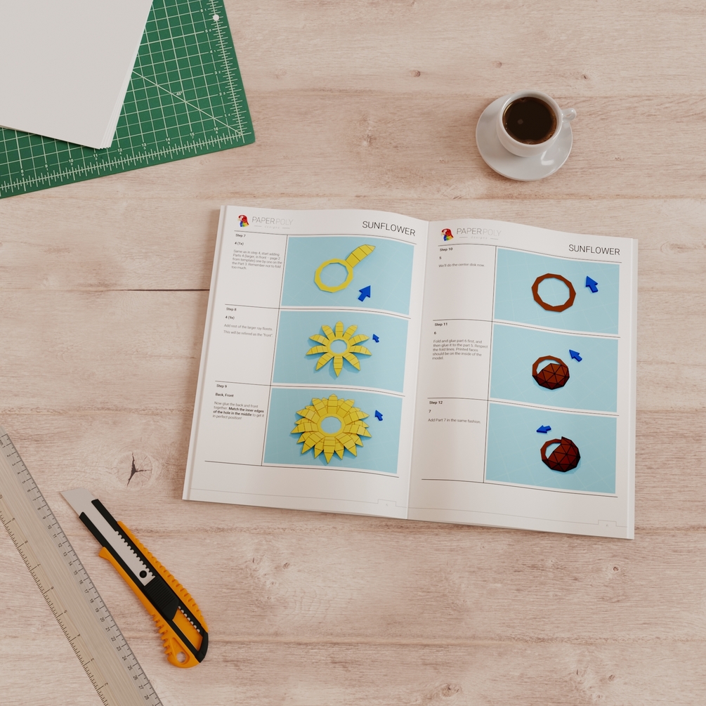 Sunflower Papercraft 3D DIY Low Poly Wall Decor PDF Template